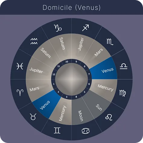 Although this article is part of the series on the decans, I will only be discussing the two primary essential dignities and the two debilities. Because I am still learning, I will not be sharing my thoughts on the nuanced meanings of these dignities at this time as I wouldn’t be able to do them justice at my current level of understanding. Instead, I will be focusing on the structure. Since, it can be argued, symbolic meaning arises from the underlying structure, focusing first on the structure will help to lay down solid foundations. This approach has the added benefit of conveying what appears to be the thoughtful, intelligent, and intentional elegance of the astrology system we have inherited.1