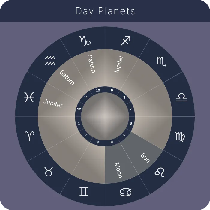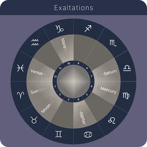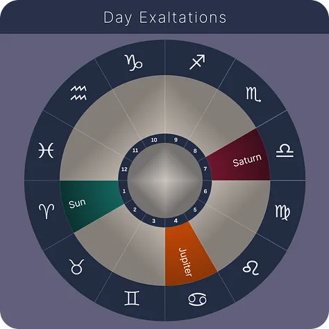 To finish up this section, here is a list of the planets in their signs of exaltation, organized by sect:
